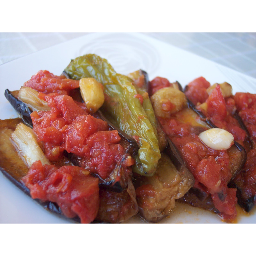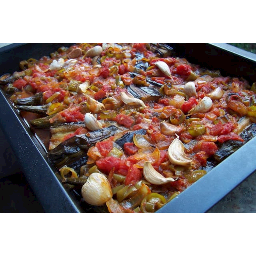 Gözde:This prepared mixture is poured over the fried eggplant and peppers in the tray.