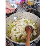 Aynur: Put some olive oil in a pot and fry the chopped onions until they turn pink.