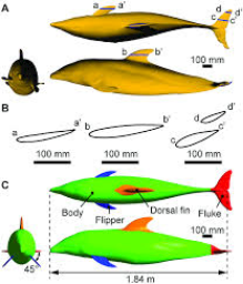 Dolphins move their flukes or back tail up and down propelling them forward. As well they use their dorsal fin to balance themselves. As well dolphins have very strong muscles that help them move easier. Their smooth skin aids the dolphins quickness by allowing them to glide through the water easily.