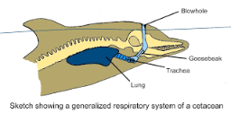 Breathe air into their lungs through blowholes. A blowhole is an opening on the head of the dolphin that they stick out of the water for periods of time to get oxygen from the air. When they do this they are also releasing the carbon dioxide into the air. This hole has a flap to cover it so that when it submerges it does not get too full with water.