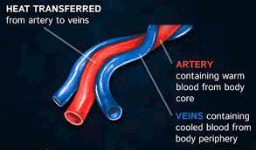 Dolphins are endothermic homeotherms meaning that they are warm blooded and a lot like humans. Arteries are surrounded by veins and blood traveling through them causes some heat for the dolphins.
