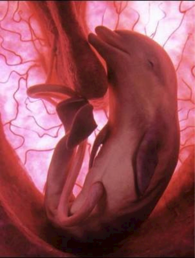 The dolphin slowly grows in a mothers uterus. It usually takes them 12 months to be born. Once out they can swim right away. Baby bottlenose dolphins usually stay with their mothers for between 3-6 year in which time they grow and learn how to survive before they go off on their own.