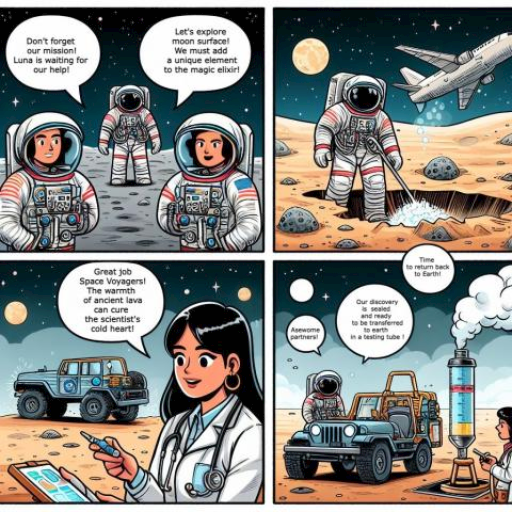 Pingu was worried as he realized time was running out for Luna and the elixir wasn’t ready yet. Shortly after, he received a video call from some excited kids telling him that he should look for a unique ingredient, a ray of light on the dark side of the moon. Pingu knew it was a tough mission, but he could not but listen to the kids’ advice. He immediately flew to the dark side of the moon, where he ventured deep into the lunar craters. After a while, he discovered a rock with a shimmering ray of light piercing through the darkness. With a heart full of hope, Pingu captured the light in a crystal vial. Returning to Earth, he added the light to the elixir, which sparkled with newfound brilliance. Pingu was now sure the magical potion would bring warmth to the scientist’s icy heart.