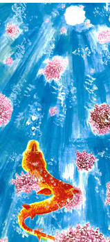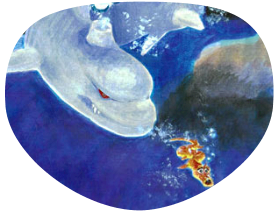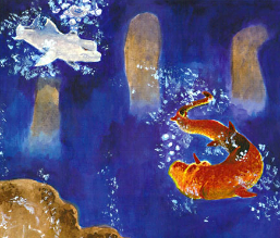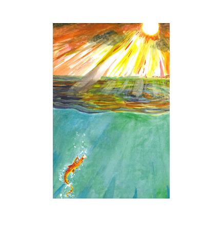 "I'm swimming up above the waves to see the sky of blue;I've never seen it even once,
