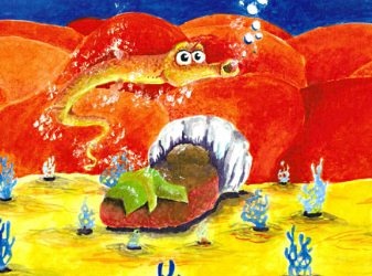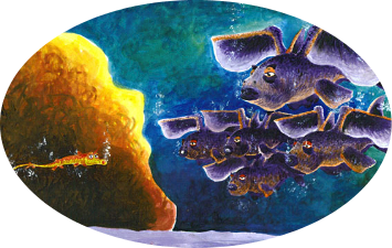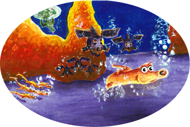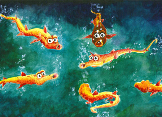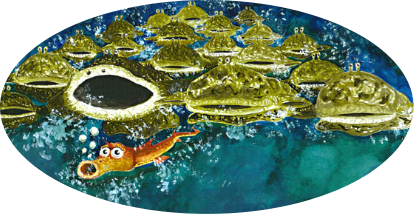 But the other gnarbles warned him that he shouldn't swim so high,As did the blyfish family that always swam close by.