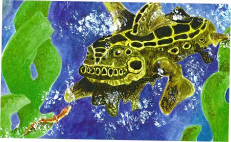 The gnarble smiled happilyand set his fins a swimming