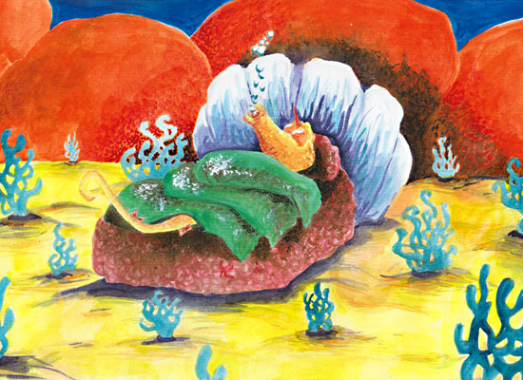 The gnarble cowered back in fear and shook from fin to fin,But then he saw a school of fish called shiny glimmy glin.