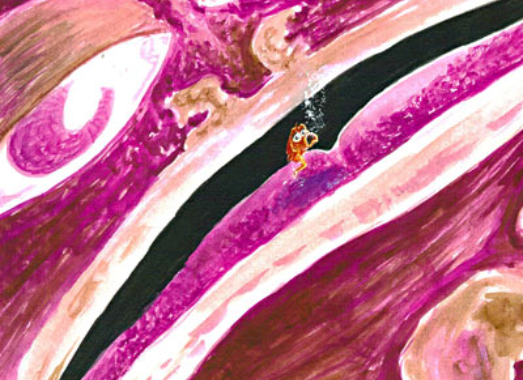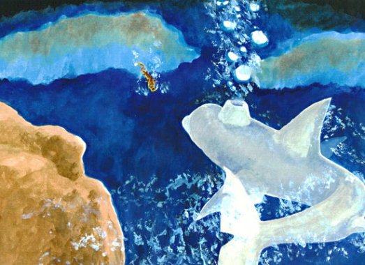 He swam up past the boulders made of