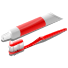 He jumped out of bed, got dressed, and ran to the bathroom to brush his teeth.
