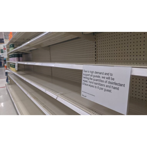 My family decided to go stock up on food, water, and other essential needs. Going into the stores it felt like a scene straight out of a movie, empty shelves, little to no water, no cleaning supplies, no hand sanitizer, no lysol, absolutely no toilet paper. It's crazy how one month can be so chaotic, I never thought that COVID-19 would create such an issue were many are panicked and buying out stores. I feel bad for those who are in need of these necessities and can't find them anywhere. Hopefully this pandemic gets resolved and we can all go back to our regular lives. Although I know that might be months or even a year from now, where the Coronavirus isn't such a threat to humanity.