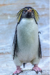 Piggy Penguin waddled like a monster closer to Cole and the snow crunched under his feet. He was starving for fish and ice! Cole fed him some fish and ice. It was tasty.